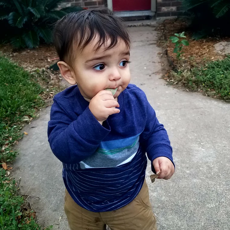 C’mon, kid! I swear I feed my child. (See my prior post on baby food, DIY Baby Food Meal Prep Is Simpler Than You Think, for evidence that my hubby and I painstakingly take the time to make food for our precious baby.) At least leaves are organic? Are leaves organic??